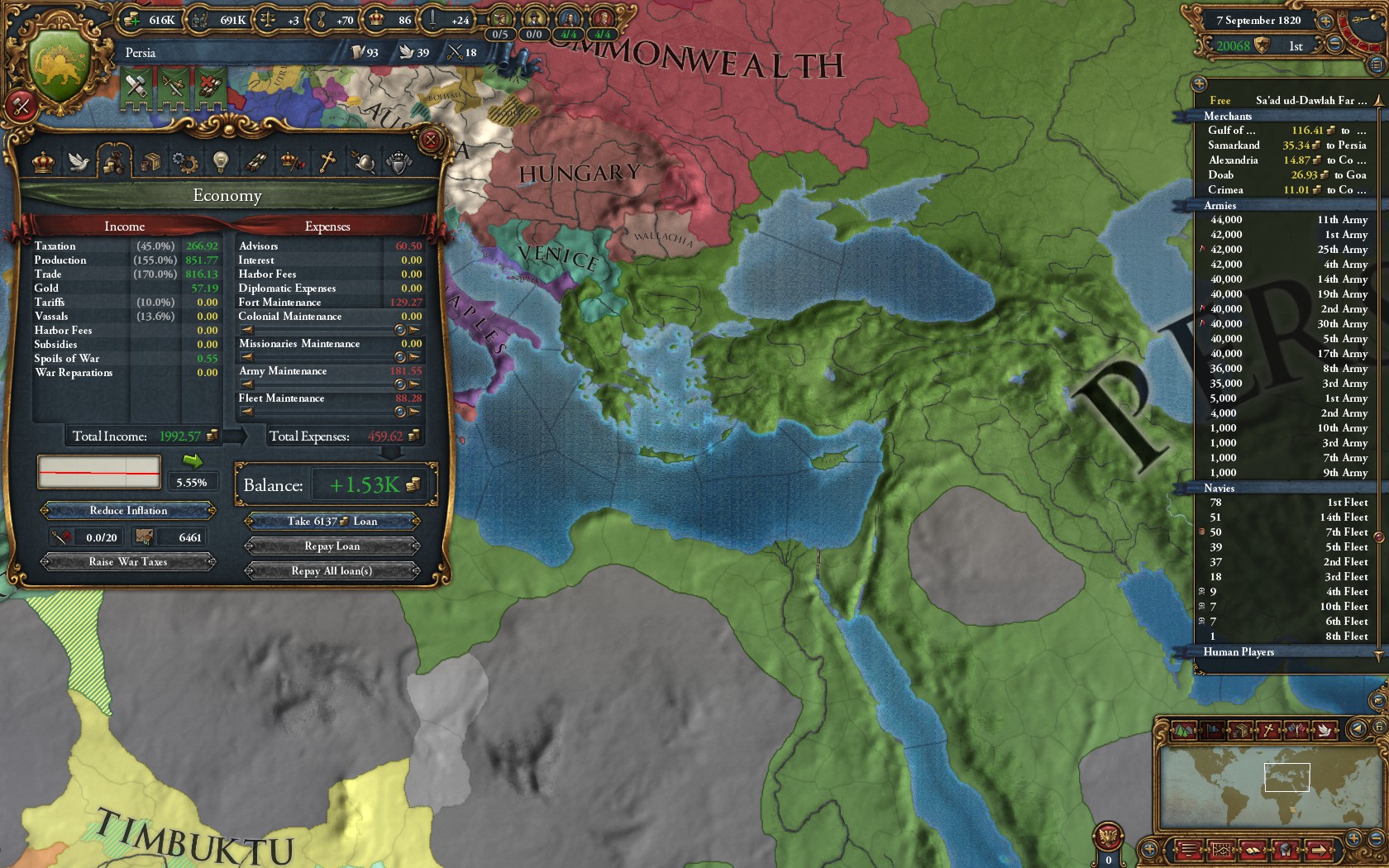 , dafür kannst Persien gründen wennde durchhälst und die Timuriden bzw. was immer aus Ihnen rausbricht quasi "gratis" zertreten (was empfehlenswert ist, weil das Zeugs allied gern die Ottos)