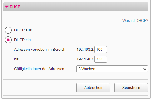 ICh hab direkt das DHCP von dem SPeedport ausgeschaltet. Wenn du das DHCP anlaesst dann macht der speedprot manchmal Dinge die er nicht soll.